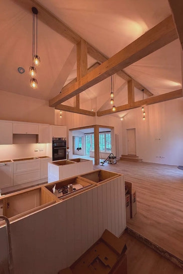 Ersetzen Sie Ihre alte weiße Deckenkappe und das Kunststoffkabel durch eines unserer maßgefertigten Dreifach-Pendelsets. Sie erhalten eine Deckenkappe mit 3 x Kabeln und 3 x Lampenfassungen sowie Barrel Cages, verdrahtet und fertig zum Aufhängen, in den Farben Ihrer Wahl und mit Lampenfassung.